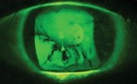 An important application of using this dye to assess the tear film is to measure the tear break-up time (TBUT). Your eye doctor will instill the dye in your eyes and have you blink and then hold your eyes open. The time from the end of the blink to the appearance of the first dark area in the flourescein pattern is the TBUT. Healthy patients generally demonstrate a TBUT greater than 10 seconds.The dark areas show the drying areas in the tear film.