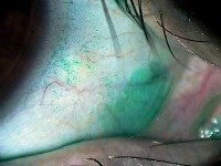 The green dots show staining of the conjunctiva indicating Dry Eyes.